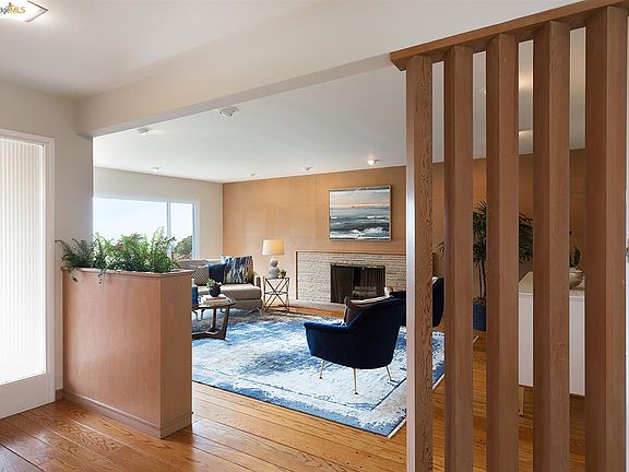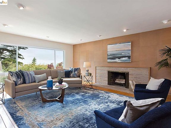 Nestled on just under 1/4 acre with sweeping Bay views is this serene and private 3 bedroom mid-century just blocks to shopping and dining in Montclair Village. Enjoy your harvest from the Sunday farmer's market with a picnic and play time on your level lawn set amidst expansive park-like grounds. The mostly level living with seamless indoor/outdoor flow from the central gallery offers a stunning canvas for updates to suit your lifestyle. Watch the sun set over the S.F. skyline from the spacious living room with random plank hardwood floors and brick fireplace. Host your holiday feast in the formal dining room. The eat-in kitchen with casual dining area is bathed in morning sun and opens to the rear grounds, perfect for outdoor food prep and dining under the stars. Pass through the central gallery featuring floor to ceiling windows and sliding door to reach the bedroom wing with 3 bedrooms and 2 baths including a master suite. Generous rec/rumpus room w/ bar & built-in seating.