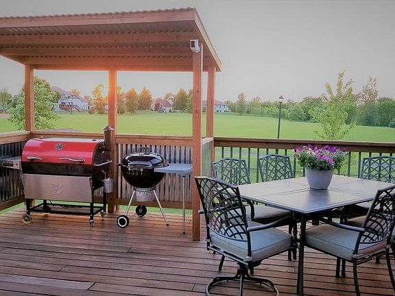 BEAUTIFUL VIEWS AND AMAZING open concept home with vaulted ceilings offers tons of cabinet and counter space. Walk out to the huge deck with built-in grill port overlooking ZIMMER FARM PARK (baseball, basketball, tennis court & playground). Three generously sized bedrooms with ample closet space on upper level and master-walk-in closet and walk-through bath. The lower level offer a spacious great room, 4th bedroom and craft/den area could be easily converted to a 5th bedroom. Laundry room is finished. Unique sprinklers pop-up to water lawn. Fenced backyard with access to the walking trail and park. Storage shed included which also has a parking pad for small trailer. Adjacent to garage is additional parking pad for camper/RV/or boat.
