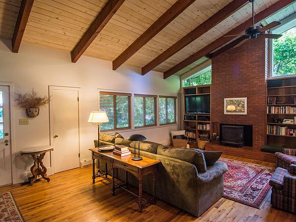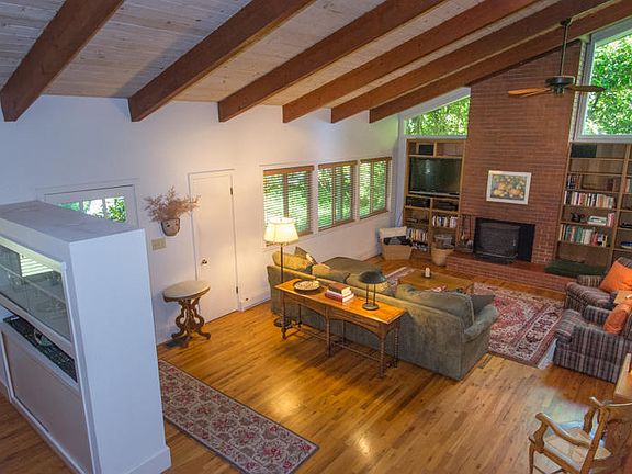 Midcentury modern custom designed home, reflecting unique features of that era. Gorgeous hardwood flooring, vaulted ceilings, huge valley oaks, all on nearly 1/2 acre. Beautiful split-level floor plan, spacious daylight walkout basement with bedroom, all newly carpeted; perfect for playroom or guests. Workshop, a huge backyard, and lovely neighborhood are among the features.