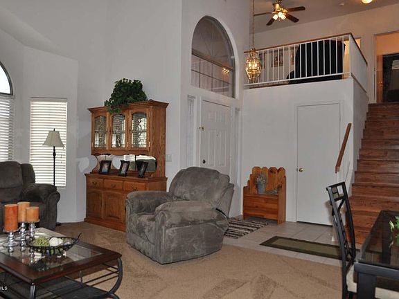 Immaculate, updated 3BR, 3 bath, loft home with an expansive back yard highlighted by a Pebble Sheen pool, waterfall & a dramatic view of Ludden Mountain. Handsome, solid wood floors in the family room & one year old carpet accent this well maintained home by the original owners. Striking granite counters, in addition to two pantries, grace the kitchen. One bedroom & one full bath are conveniently located on the lower level. A gas fireplace in the family room plus a large deck off the MBR, with gorgeous views of a greenbelt, enhance this appealing home. BBQ Island plus a spacious covered patio & a manicured back yard complete this irresistible scene. Home Warranty included. Refrigerator, Bar, Glass Rack over Bar, Antique Telephone, Toaster Oven and 2 Fountains DO NOT CONVEY.