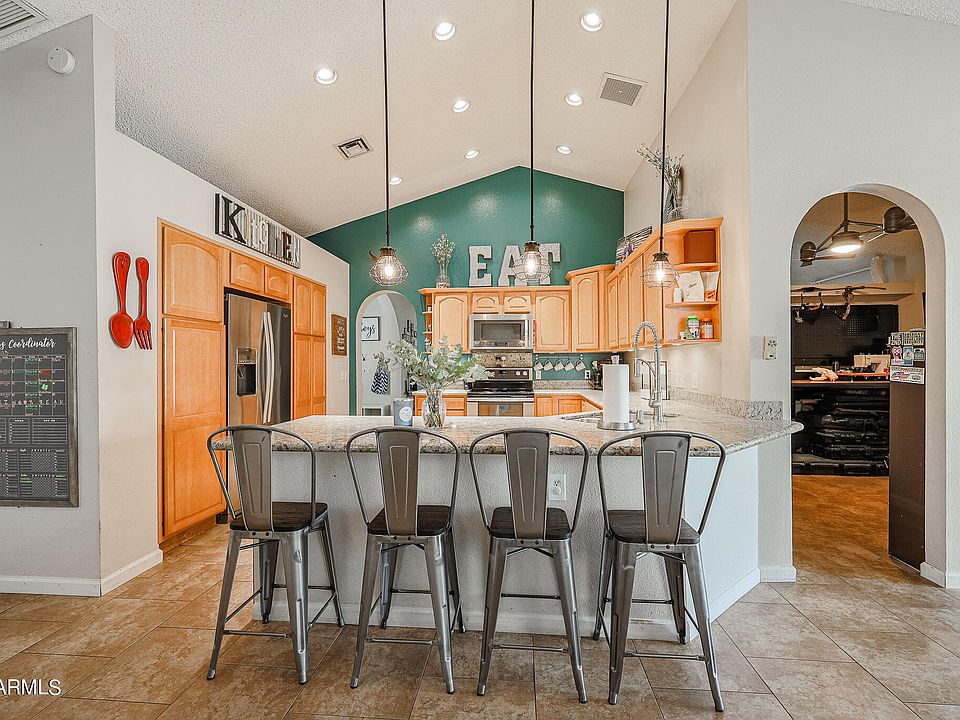 Welcome Home! This 4bd/2b plus bonus room is sure to impress! Spacious updated kitchen with stainless steel appliances/dual oven, remodeled bathrooms and tile throughout. Vaulted ceilings carry from living area to master, where you enter French doors to find an XL master shower and beautiful barn doors. New AC '21. Bermuda hybrid sod '20 in back, auto sprinkler system in front & back. Large covered back patio. Double gated pull through RV parking with slab to rear of property & 30amp hook up. Awning disassembled but available. ADT home security with all window/door sensors, motion detection and exterior cameras. Newer dual pane windows. AC'd 2 car garage with 220 plug & sink. Located conveniently to freeways and in the district of an incredible 5A high school this home will not last long!