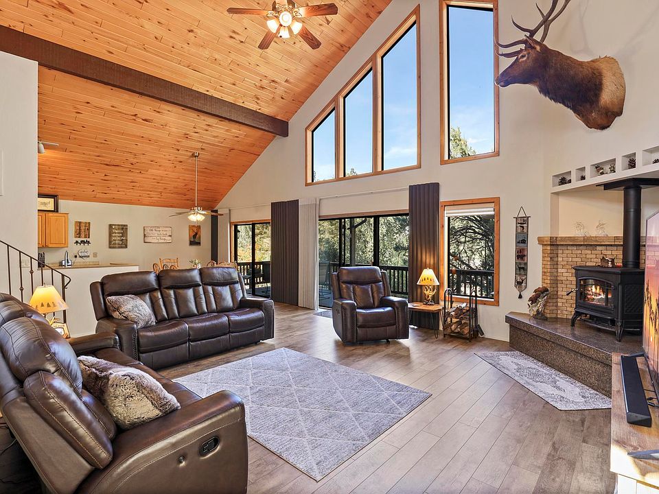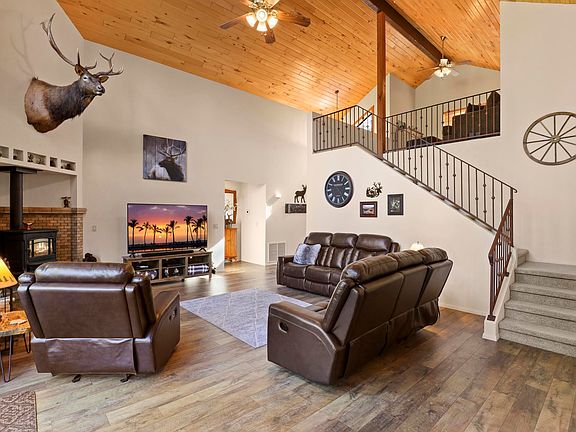 Perfect weekend getaway or full time residence. Open floor plan perfect for entertaining. Enjoy 20 ft cathedral T&G ceilings. Plenty of natural light through the wall of windows. Perfect to take in the abundance of nature! Watch the local wildlife from the partially covered TREX deck. Or sit outside on a chilly evening by the fire pit. Home boasts 3 large bedrooms and 3 nicely appointed bathrooms. Finished basement is a bonus for extra space. Two car attached garage plus a 19 x 28 detached garage/workshop. Additional shed with fenced area for a garden or dog run. Large additional storage off attached garage. You're going to want to see this gem in Pine!