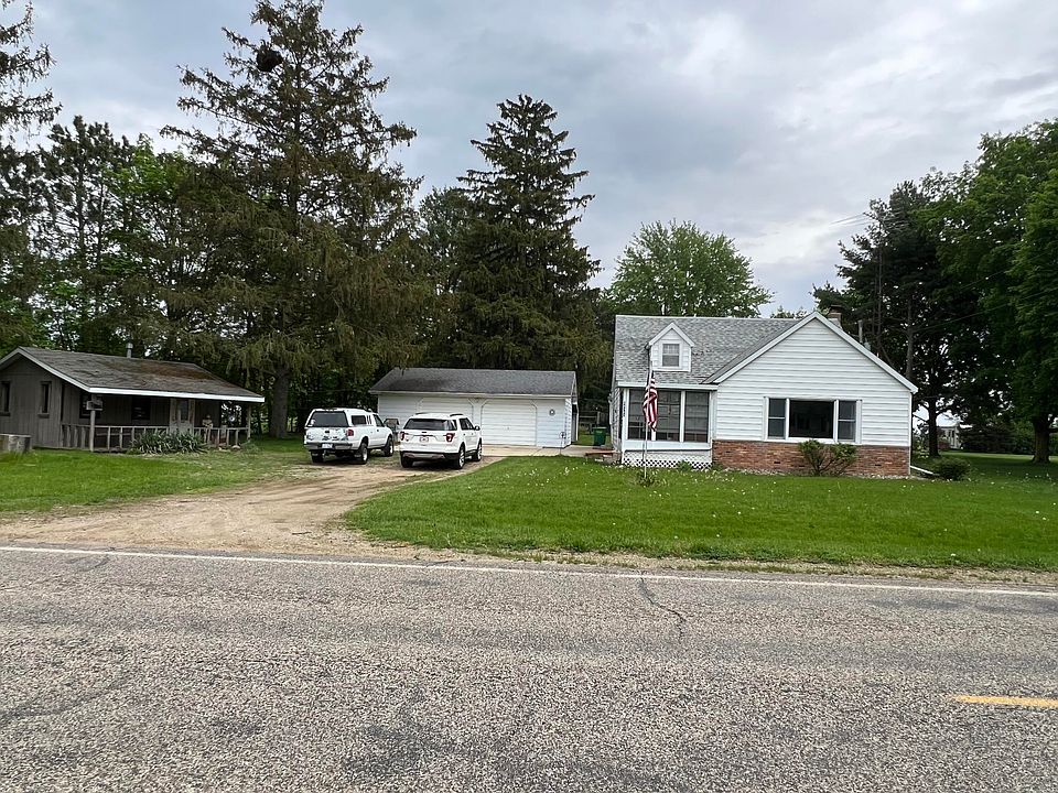 This Home offers good bones but needs TLC...It sits on1 beautiful acre with a large 2 car detached garage and storage behind it. A really nice cedar sided she shed with electric and cement floor and a pool house with electric and wood floor. Home offers3 bedrooms could be 4 bedrooms with laundry on the main floor. Spacious mudroom entering from the back door. Windows have been replaced years ago with Andersons. Solid hardwood maple floors under flooring in dining room, kitchen and main bedroom area. Sunroom has sliding glass doors. Spiral staircase but could be converted back. Roof is not that old. Agents: read comments