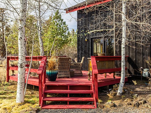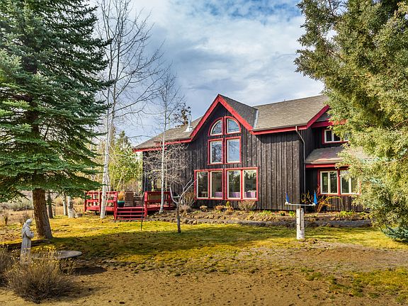 Tucked away in Lovestone Acres is this unique home on 5.5 acres. Full of light, inside it's open and bright with a wall of two-story windows. Concrete flooring downstairs and wood floors upstairs. The home actually has 3 bedrooms but only two have closets. There is an extra spacious room that works well as a community closet. The wood beams spanning throughout give this home a magical feel. Attached to the garage is a non-permitted guest house. The location is very private with a garden area, large deck, firepit/sitting area and lots of parking. The summer welcomes lots of flowers and greenery. Mountain views from the property.