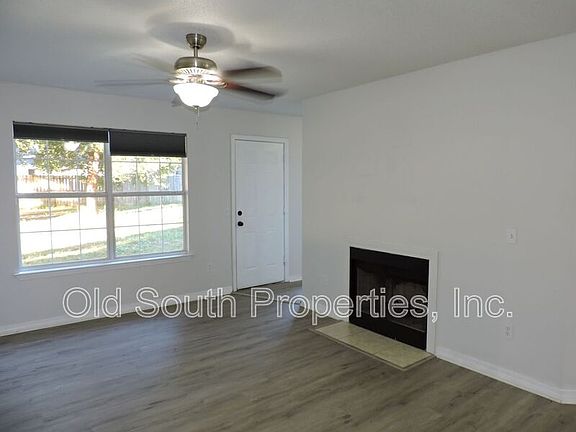 Wood-look vinyl plank flooring throughout. Living room with ceiling fan & decorative fireplace. Formal dining area plus breakfast nook. Fully equipped kitchen with pantry. Split master suite with double vanity, garden tub & walk-in closet. Ceiling fans in all bedrooms. Inside laundry. Fenced backyard with open patio & yard building. Two car garage. Small pets considered with owner approval. No smokers.