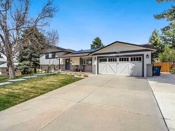 Beautifully renovated Tri-Level home situated on a spacious 18,165 square foot lot in the highly sought-after Palos Verdes neighborhood within the Cherry Creek School District. This stunning 5-bedroom, 3-bathroom home blends modern updates with timeless charm. Renovated throughout, the home features a beautifully updated kitchen with new appliances, and a custom built in cabinet bar open to the dining room—perfect for entertaining or everyday living. The primary suite includes a brand-new bathroom, while new carpet, luxury vinyl plank flooring, and fresh paint give the entire home a bright, move-in ready feel. A cozy wood-burning fireplace anchors the living space in the downstairs, and the versatile layout includes a non-conforming 6th bedroom, ideal for a home office, guest room, or gym. Enjoy time outdoors in the large backyard dotted with mature fruit trees—apricot, plum, and two apple trees, and a large patio. The mudroom offers custom built-in storage benches and closets for added convenience off of the garage. New gutters and downspouts with leaf guards, new egress window in the basement bedroom, sump pump and french drain system! Just minutes from DTC and I-25, this home offers the perfect blend of tranquility, space, and accessibility.