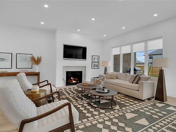 BETTER THAN NEW! Gorgeous 4 yr old turnkey executive bungalow with approx. 3000 sq. ft of living space situated in desirable Talbot Village. Close to HWY 401/402, Wetlands Trails, Startech Community Centre, fantastic shopping and restaurants. Home has been completely upgraded with designer finishes throughout and offers a move-in ready alternative to building without the delays and upfront costs associated. Open concept main floor features gleaming hardwood plank flooring and soaring 10 ceilings in the foyer and great room. Custom kitchen showstopper, an entertainers dream with timeless white cabinetry floor to ceiling, stunning quartz counters, gas cooktop, and stainless Kitchen Aid appliances. Oversized island open to a welcoming great room with gas fireplace and informal dining with 8 ft patio doors leading outside. Down the hall you will find 2 spacious bedrooms and 2 full baths including a beautiful primary bedroom retreat with walk-in closet, luxurious 5pc ensuite with oversized shower, soaker tub and 90 white oak vanity. Convenient laundry in mudroom with built-ins and bench. Finished lower features rare 86 high ceilings, water resistant LVP flooring, large bright windows, enormous Rec room to be used as you desire. Another full 4pc bath, 2 large bedrooms and excellent storage room. Fully fenced yard features a 13x10 covered concrete patio with gas line for BBQ and afternoon sun with ideal green space for a pool! Too many upgrades to list, this one is a must see.