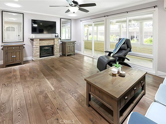 Don’t miss this breathtaking home, a true gem of healthy living! Nestled in the Laguna Woods Village retirement community, this stunning, single-level, Casa Linda model offers ultimate convenience with no stairs, no neighbors above or below, and just one attached wall. This home is a sanctuary of wellness and comfort, featuring state-of-the-art health-conscious upgrades. Bathed in natural light from seven strategically placed solar tubes and five ceiling fans, it promotes a vibrant and energizing atmosphere. The upgraded kitchen features custom cabinets with accent paint, stainless steel appliances (including a refrigerator replaced in 2024), farm sink, pendant lights, pull-out drawers and a reverse osmosis water system with a dedicated faucet and line to the refrigerator for pure, healthy water. Both enhanced bathrooms have walk-in showers that are equipped with seamless shower doors and handheld showerheads with water filters for a cleaner bathing experience. Designer touches throughout the home include crown molding, engineered wood floors, Designer baseboards, smooth ceilings, recessed lighting, and a rust-free custom metal front screen door. Climate control is expertly managed with three zoned A/C and heating units, ensuring optimal comfort year-round. An inside laundry area with a washer and dryer, along with vinyl dual-pane windows, add to the home's modern conveniences. The enclosed sunroom, with dual-pane windows, custom blinds and tile floor, is an ideal spot for relaxation, a home office or a perfect space for your creative pursuits. Additionally, the carport is conveniently close to your home, adding to the ease and comfort of living in this exceptional property. This home combines both style and health-conscious living, perfect for relaxed retirement living. Located in the dynamic Laguna Woods Village, Southern California's premier 55+ community, this residence isn't just about living; it's about thriving. With 250 clubs and organizations, 27 holes of golf, a driving range, golf club, dining options, tennis courts, equestrian facilities, and more, every day offers new opportunities for adventure and connection. Enjoy the convenience of RV parking, 7 clubhouses, 5 pools, spas, bocce ball, billiards, gyms, ballrooms, and a performing arts center—all within reach.
