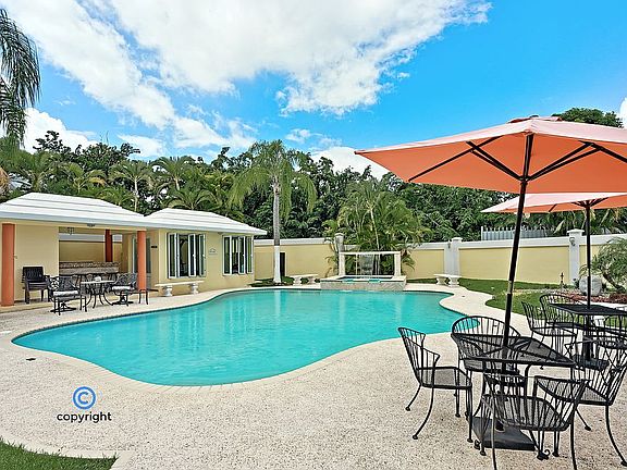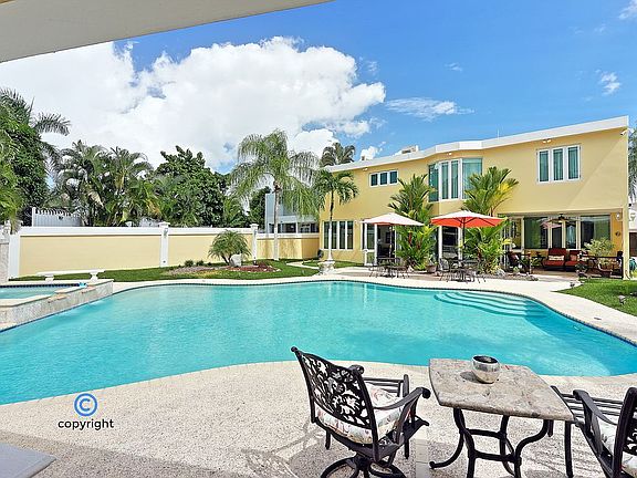 This unique house is in the sough-after residential complex of Montehiedra West in Las Flores. This thousand Square Meters property comprises an 5,700 sq ft home with six bedrooms and six Bathrooms. Tastefully designed with high ceilings and lots of natural light throughout. Impressive fully equipped & modern kitchen with breakfast nook. The backyard is ideal for entertaining and features a swimming pool with wet bar and grill. Every detail is accounted for in this elegant and tastefully designed home. The Grand Master bedroom with foyer, office and gorgeous en-suite bath with ample his and hers walk-in closets. A comfortable Jr. Master bedroom and three great size bedrooms. Montehiedra is an exclusive and well-kept community with a great location and security. There are several parks and recreational facilities available to residents in the community. Near to the island's finest private schools, upscale restaurants and shopping Centers with easy access to major highways..