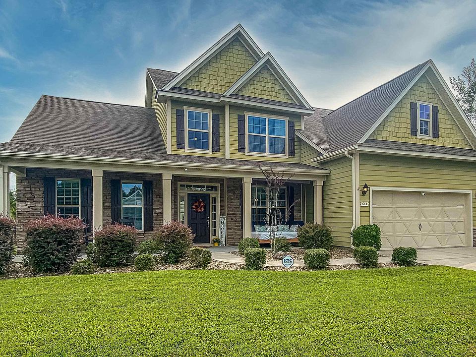 Make this incredible home in Sago Plantation yours. It has everything you have been dreaming about plus plenty of space! Once you are in the beautiful gated community and pull up to the home you will notice the privacy from the nature preserve area. The inviting front porch has stone accents and the rest of the home is made of cement fiber board. Relax with a book on the custom made full size bed porch swing with retractable sun shade. As you enter the home notice the brand new LVP flooring throughout the main level and the stunning wrought iron balusters on the staircase. There is a convenient half bath for guests off the foyer. The formal dining room features wainscoting and the cozy family room has a beautiful natural gas fireplace surrounded by granite. The kitchen has tons of cabinet space with a work island, pantry, storage closet, space for a table, granite countertops, stainless steel appliances and the dishwasher was just replaced in 2022. The primary bedroom is on the main level and has a tray ceiling with crown molding. The primary bath has everything with dual sinks, a large soaking tub, tile shower, separate toilet area plus a large walk-in closet with some custom wood shelving. As you head up the stained tread staircase you will love the open upstairs hallway that looks down into the foyer. Upstairs one bedroom has a private en suite full bathroom. There is also a large hall bath for the other upper level bedrooms. Upstairs has a total of 5 bedrooms which could be used as bedrooms, theater room, office, playroom, living room, etc. This home has so many possibilities plus you can have peace of mind with the home warranty the sellers are offering! The BEST part is once you step out back under the covered porch and view the MASSIVE BACKYARD! This property is over 1/2 acre and is surrounded on 2 sides with wooded nature preserve. Relax on the oversized back patio and dream up endless possibilities for this spacious yard. The entire yard is equipped with an irrigation system. The larger HVAC system was replaced in 2021. This home has a fabulous location close to top restaurants, outlet shopping, Legends Golf Course, grocery stores, medical facilities, gyms and only about 8 miles to the beach! The home is also zoned for award winning schools. Schedule your appointment today with your agent!