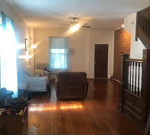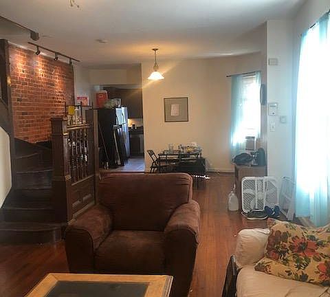 4 Bedroom house, 1.5 bathrooms. Top floor has been converted into a huge bedroom loft that spans the length of the house. The second floor has two large bedrooms (ceiling fans), 1 small bedroom/office (ceiling fan), laundry room and full bath. The first floor has hard wood floors and exposed brick. There is an open floor plan in living room (ceiling fan), dining room and half bath. Large kitchen with stainless steel appliances (fridge, dishwasher, microwave, and tile floors. Back door opens to small side yard/driveway with off street parking. Front porch and gas grill. AC window units available for all rooms. Utilities are split between housemates. Security Deposit required upon lease signing. Credit/Background checks through Zillow. 3 to 1 Income to Rent Ratio. No smoking. Not inspected for DC voucher program.