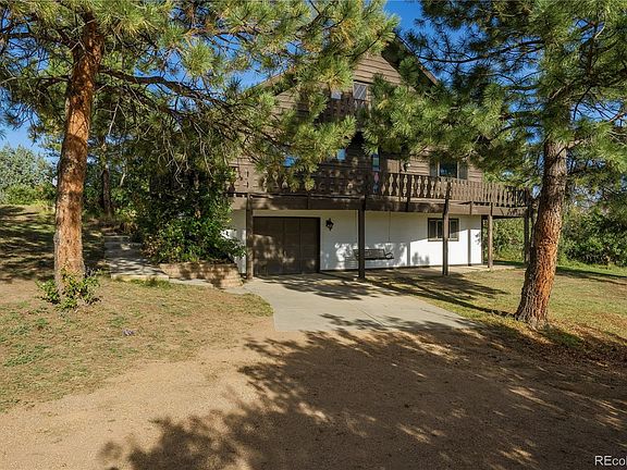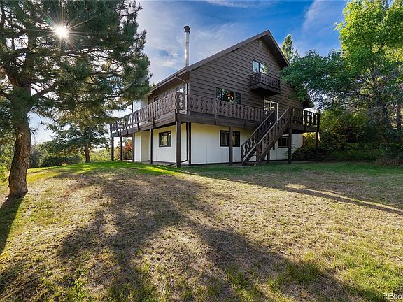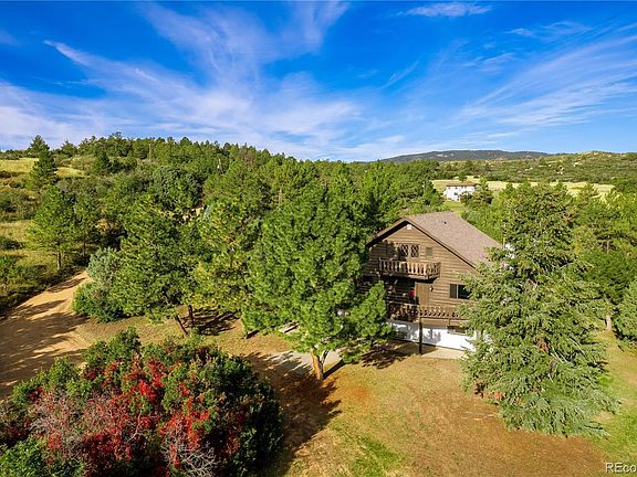 Experience the allure of Colorado living at its finest. This 3000 sqft, 3-bedroom, 3-bathroom home, set on a sprawling 5-acre corner lot, is now available for the first time. Inside, you'll find updated hardwood floors and elegant granite countertops, adding a touch of modern luxury to the home. While this property has received some updates, it offers a fantastic value-add opportunity for your personal touch and creativity to shine, as it could benefit from a few more renovations and TLC. Brand new carpet and paint in the recently modernized basement. The living space is complimented by a huge wrap-around deck that offers panoramic views of the tranquil surroundings. What really sets this property apart is its direct access to 200+ acres of open space in your backyard, making it a nature lover's dream. Whether you want to admire the scenery, host gatherings, or relish the peace and quiet, this home has all the potential. Don't miss this rare opportunity to own a piece of Sedalia's natural beauty.