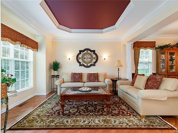 This meticulously kept Colonial home includes 4-bedrooms and 2.5-bathrooms and is sure to steal your heart! Enter through the front door to a spacious floor plan that includes beautiful gleaming hardwood floors, classic wainscoting, crown molding, classic interior columns and recessed lighting. On this main floor you will find a sitting room, formal dining room, kitchen, living room, half bath, office and laundry room. The spacious eat-in-kitchen is complete with granite countertops, beautifully tiled backsplash, stainless steel appliances and tons of natural light entering through the vaulted skylight, oversized windows and sliding glass doors that lead to the private patio overlooking the rear yard. The kitchen is open to the family room which includes a beautiful gas fireplace. Head upstairs to the second floor where you will find each of the 4 generously sized bedrooms and 2 full bathrooms. The master bedroom includes its own private sitting area, huge walk-in closet and a beautiful master bathroom with jacuzzi tub and walk-in shower.