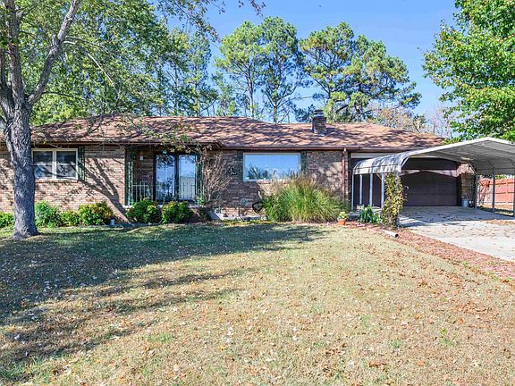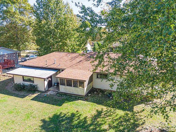 CUTE 3 BR, 2 BA 1,390 sf BRICK/VINYL RANCH, LARGE LIVING ROOM, CONVENIENT DINING ROOM & KITCHEN, LARGE FENCED BACK YARD, 2 CAR GARAGE PLUS 2 CAR CARPORT, 2 STORAGE SHEDS, CITY UTILITIES, QUIET NEIGHBORHOOD, NEAR LAKES/RIVERS. Enjoy the Ozarks from this cozy home in small community just west of Mountain Home. Elegant entryway, spacious living room,. brick fireplace with gas log. Plenty of room for family and friends. Primary bedroom with private full bath, 2nd and 3rd bedrooms with plenty of space. Hall bath with tub/shower combo. Lovely covered front porch. Replacement Vinyl windows. Roof 2018, HVAC 2022, new stove & dishwasher. Screened sunroom just off the dining room with view of very large, private, fenced backyard. Convenient storage/potting shed next to home. PLUS, detached 27 x 11 shed/shop with concrete floors. Just minutes to Cotter, Roundhouse Shoals, Big Sprig Park, public access to White River. Near shopping, restaurants, businesses, medical offices, hospital.