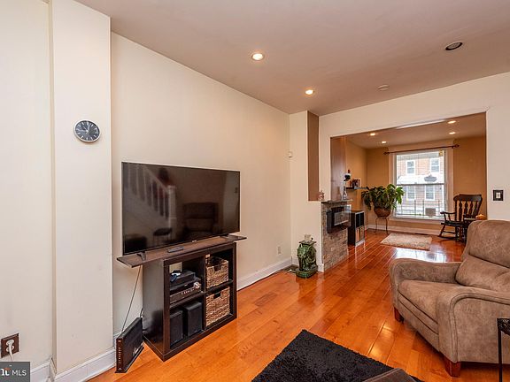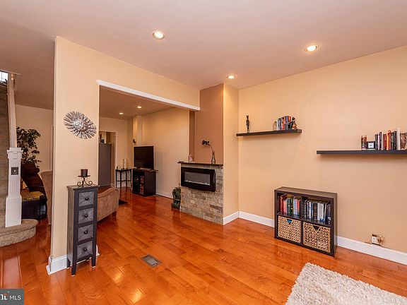 This lovely brick row home has been tastefully updated throughout and is move-in ready today! A charming covered front porch welcomes you as you step in to find gorgeous hardwood floors and streaming natural light through the open living/dining areas with a bright picture window and cozy built in electric fireplace. Updated eat-in kitchen features sleek black and stainless steel appliances, modern tile backsplash, ample cabinetry and counter space, and walks out to a fenced back yard! The upper level features 3 generously sized bedrooms and a full bathroom with glass brick detail. Full, unfinished, walk-up basement provides plenty of storage space, laundry and utilities and offers potential to be finished for additional living space. Located on a quiet street in Waverly, just minutes from JHU, shopping, dining, entertainment and more! Welcome home! Possible ground rent buyer to verify.