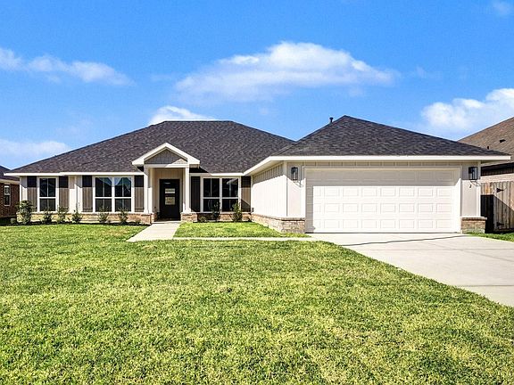 Enjoy this beautiful 2557 SQFT MOVE-IN-READY plan in the elevated living community of Greystone Subdivision that features a 70' Lot, 4 bedroom 2 full baths, OFFICE/FLEX ROOM, walk in pantry, natural lighting and standard upgrades such as MODERN finishes, WAINSCOTING, High ceilings, Trey ceiling with crown molding, stainless steel appliances, LVP flooring, double pane low E windows, full sodded front and back yard, Large garden soaking tub, spacious shower, large baseboards and more!! A block away from Angleton Police Department and Recreational Center. It offers a strong sense of community, low property tax rate, easy commute to main highway 35 and 288 and is zoned to top tier Angleton schools. Come on home!!! ALL ROOM MEASUREMENTS ARE APPROXIMATE.