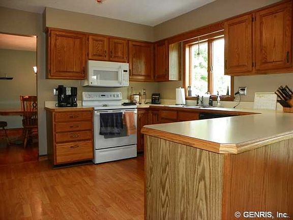 Meticulously Maintained Colonial with Nearly 2400 SF of Living Space Situated on Over 1 Acre! Large Eat-in Kitchen with Gleaming Hardwoods, Abundance of Cabinet and Counter Space, and Sliders to Rear Deck! Family Room with Bay Window Overlooking Private Rear Yard and Brick Surround Wood Stove Perfect on Long Winter Nights! Formal Dining Room, Living Room and 1st Floor Laundry! Continue Upstairs to Huge Master Suite and 3 Good Size Bedrooms! 4.5 Car Garage, Finished Basement and Many Updates: Master Bath with Heated Floors, Interior Doors and Trim, and New Hardwoods in Dining Room! Hurry!