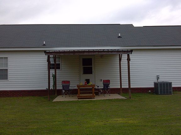 This 3 bedroom, 2 bath home of 1,364 SF is USDA eligible and has a new HVAC system! The brick exterior has been refreshed with a mortar wash and black wood shutters. Vinyl siding wraps the sides and back of the home. A covered front porch welcomes visitors. The living room is open to the dining area and the kitchen offers all appliances, a pantry and plenty of cabinetry. A door from the dining area opens to a covered patio with extended grilling patio overlooking a large back yard with fire pit and garden bed ready for planting. Back inside, the spacious primary suite offers a walk-in closet and en suite bath. On the opposite side of the home, the guest rooms are good sized and share a hall bath. Additional features include a laundry room that leads to the 2-car garage with attic access and storage shelves. Out front, there are newly installed sidewalks in the neighborhood.