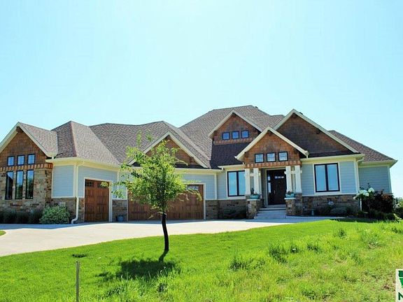 Prepare to be amazed by this one of a kind custom built home situated at the end of a quiet cul de sac. No attention to detail was spared in this 5 bed 5 bath craftsman style, rustic modern home with high volume 12ft ceilings throughout the main level. This magnificent property sits on hole 3 fairway of the Dakota Dunes golf course with incredible views of the entire hole from tee to green. Entertain your guests on the covered cement patio with outdoor cooking station, automatic shades, cedar ceiling while overlooking your salt water pool and beautiful gas firepit. The custom kitchen includes a large island with quartz tops, high end cabinetry, walk in pantry and separate eating area with great course views. The master suite includes custom windows, trey ceilings, tile walk in shower, dual vanities, heated tile floor and a large walk in closet. The living room includes a custom montigo fireplace with glacier stone surround, huge windows with great views, and beautiful hardwood floors. Main level also includes a large drop zone / laundry area, 3 additional bedrooms, and three baths. The finished lower level has a custom bar with island and pub area, huge family room with surround sound, workout room, daylight windows, guest bedroom, ample storage, and a concrete safe room. This home also offers an oversized heated 3 stall garage with epoxy floors and golf cart garage. Additional amenities include custom antique built ins, geothermal zoned heating and cooling system, high end landscaping, whole house sonos system, custom barn doors, new roof 2017 and custom wood working throughout. There are too many additional features to list but this show stopper home will impress the most discriminate buyers. Properties like this only come along once in a great while so don't delay!