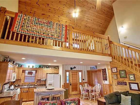 Beautiful cabin with 2 masters, ready for the entire family! Well maintained with lots of room for entertaining. Upstairs loft for reading or game nights. French Doors out to screened in porch overlook a private fenced in yard and creek. Partially finished basement complete with full bath with room to expand. Circle drive with plenty of parking. Amenities for the whole family to enjoy all year.