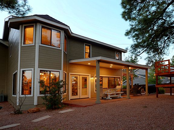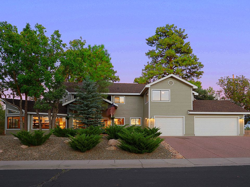 Located in the premier Flagstaff neighborhood of Amberwood, this home has so much to offer! This home has a luxurious Flagstaff vibe. Enjoy a stunning window package, that allows for fantastic panoramic views, and brings in tons of natural light. The main living area has a beautiful Malapi-rock gas fireplace, vaulted tongue and groove ceilings, and opens up to a spacious dining and kitchen area. The finishes in the home are top notch. The kitchen is ready for a cook, with generous granite countertops, stainless steel appliances, and custom soft-shut cabinetry. Enjoy entertaining outside, with a covered patio partnered with exterior speakers. The kids can enjoy a custom tree house hideout. End the evening cozied up to the outdoor fire-pit. Schedule your showing today!