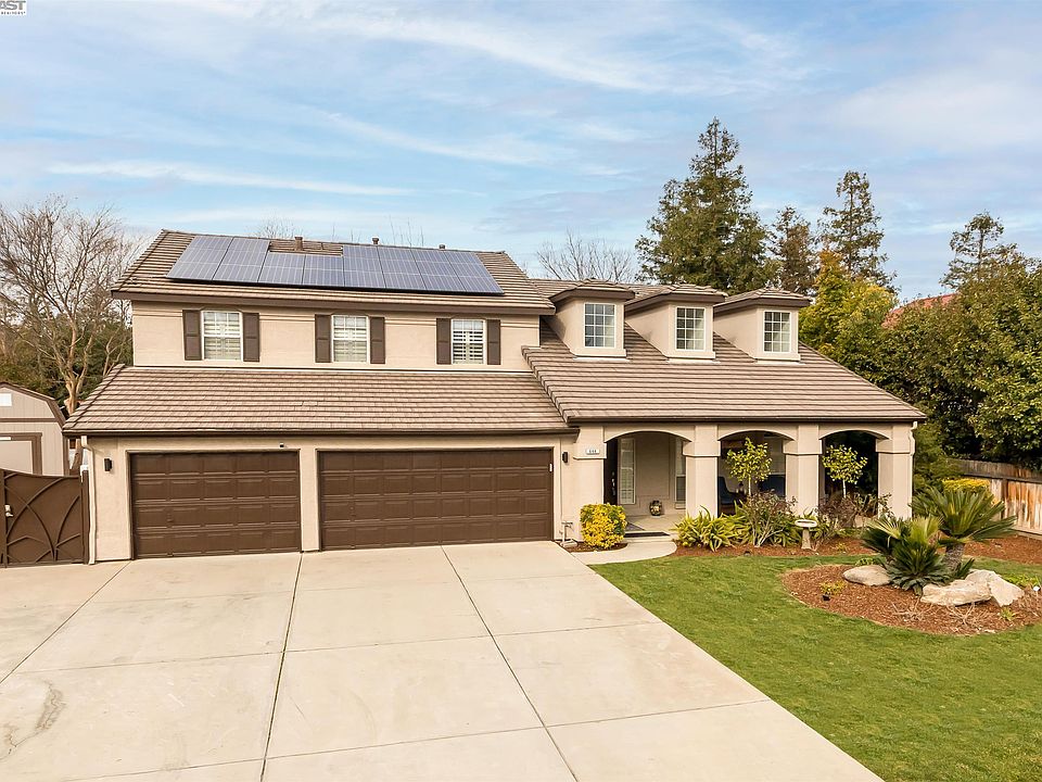 Beautifully customized home has much to offer!! Surrounded by mature trees in the sought after Renaissance gated community, walking distance to Buchanan Educational Complex, next to bike/walking trails and parks, plus convenient shopping/dining. This home has it all, sitting on a private Cul de Sac over 4,000sf with 5 bedrooms /3.5 bathrooms. Downstairs includes breakfast nook, dining room, den, plus large family room with a wall of windows/glass door onto covered patio. Large yard offers sparkling pool with waterfalls, seating area with pergola, basketball court, side area for RV/boat parking, and 15'x8' vinyl sided shed. Downstairs Jack and Jill bedrooms/bath with direct access to the side yard and pool, perfect for guests/extended family. Upstairs master suite with a large sitting/office area, walk in closet, plus bath with imported Quartzite counters, large soaking tub, and large walk in shower. Also, upstairs another Jack and Jill bedroom/ bath, plus a large movie theatre/family room with 160'' screen, HD projector, and immersive 5.1 surround audio system. Additional features include, whole house fan, security system and smart home tech, plus 11.5kw OWNED solar system, and much more. Three car garage with epoxy coated floor lined with built-in storage cabinets.