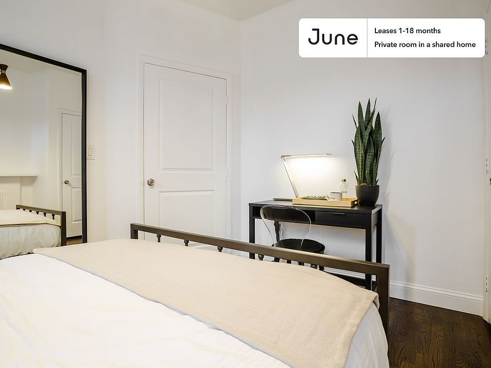 This Queen room in Prospect Heights is available on a 12 month lease or a flexible short term (31 to 364 days) lease. You pick your custom start and end date. Monthly rent rate is determined by furnishing preference, move-in date and move-out date. Speak to a June representative for recommendations on the best stay duration for the lowest rate.