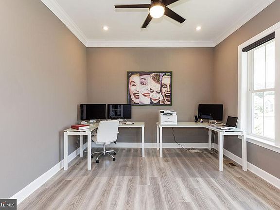 Make sure you check out the virtual tour. Why buy new construction when you can own a home customized to perfection? This stunning property is the showstopper of Bulle Rock, boasting countless upgrades that make it truly spectacular. As you drive up to this 4-bedroom, 3.5-bathroom home, its unique appearance (only one of its kind) stands out, thanks to the premium front elevation upgrade and upgraded 3-car garage. Entering the 4,758 square foot home, you'll be greeted by 10' ceilings and a custom oriental runner in the grand entry hall. To the right, a sun-filled office with French doors and motorized Graber window treatments awaits. Further down the hall, a half bathroom features Quartz counters, an upgraded vanity, a custom mirror, and an elongated toilet. The large laundry room offers Quartz countertops, a sink with an upgraded faucet, extra cabinets, and a smart Samsung washer and dryer. Across the hall, the entry from the garage includes an upgraded drop zone with custom cushions for the bench and a closet. In the main part of the home, you'll notice the two-story staircase and basement staircase, upgraded to custom oak wood (not even an option the builder had) with a custom stair runner. Additional details include 5-inch baseboards, crown molding, 5-inch cased openings, and LVP flooring. The elegant dining room features tray ceilings and deluxe picture frame wood trim wainscoting. The butler's pantry offers upgraded glass front cabinets, Quartz countertops, a sink, a beverage center, and a massive walk-in pantry. The gourmet chef's kitchen is exceptional, with every upgrade imaginable: GE Café appliances, a pot filler, a gas range, Quartz counters, custom tile to the ceiling at the range hood, upgraded hardware, a farmhouse sink, and a touch sensor faucet. The kitchen flows seamlessly into the great room with tray ceilings, an upgraded gas fireplace, a stone surround, and a wrapped mantle. Off the kitchen, the sunroom/breakfast room with vaulted ceilings leads to the extended covered porch, where ceiling fans keep you cool as you enjoy the peaceful wooded backyard. The main floor also features the stunning primary suite, with tray ceilings, a custom accent wall, a custom rug, and an extended layout. The primary bathroom offers Quartz counters, a dual vanity, custom mirrors, pendant lights, upgraded fixtures, a shower with custom tile, seamless glass doors, and a waterfall showerhead. The walk-in closet includes a custom organizer by The Container Store. Upstairs, there are two bedrooms with walk-in closets and a large hall bathroom with Quartz countertops and upgraded fixtures. The walk-out basement is an entertainer’s dream, with natural light, a rec room, a kitchenette, a full bar, a gym with a walk-in closet (or flex room), a full bathroom with upgraded tile, and a bedroom with a walk-in closet. The layout makes an in-law suite possible, and the basement also offers several walk-in closets for storage and potential craft rooms. A tankless water heater and additional storage in the utility room are added bonuses. Outside, the magazine-worthy exterior hardscaping includes a covered patio, an outdoor kitchen, a wood-fired pizza oven, and a fire pit with additional seating. This home’s premium lot offers a private retreat, enhanced by fully stone skirting, an underground sprinkler system, a whole-house generator, custom stone stairs, extensive landscaping, and lighting. This one-of-a-kind home offers more custom features than any other home in the community and must be seen to be believed. Don’t miss your chance to own this spectacular masterpiece in Bulle Rock. Schedule a showing today!