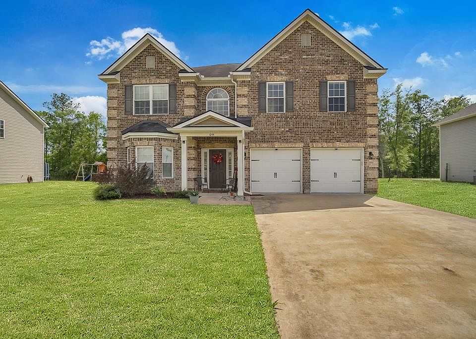 This beautiful 5 bedroom, 3 full bath home features a downstairs bedroom and full bathroom. The 2-story foyer opens to a formal living room with a bay window, and the formal dining room showcases coffered ceilings. The kitchen is equipped with stainless steel appliances, double ovens, and a breakfast bar that opens to an eat-in kitchen. Downstairs, you'll find laminate flooring throughout, vinyl in the kitchen areas, and carpet in the downstairs bedroom. Upstairs, you'll find the other 4 bedrooms along with a walk-in laundry room. Most bedrooms have walk-in closets, while the huge owner's suite offers 2 walk-in closets, double vanity, and vaulted ceilings! Enjoy the beautiful extended covered back porch with views of the large grassy backyard. This listing will not last on the market long! Schedule your Private Showing Today!