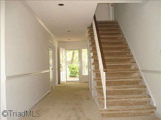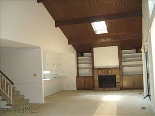Large, comfortable end unit villa overlooking the 18th tee of the Bermuda Run course...easy walk to the Club! Spacious entry leads to form din w/built-in cabinetry & to vaulted GR w/FP. Imagine quiet afternoon on the SP or shady terrace lvl deck.
