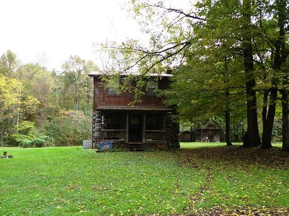 Beautiful location in the mountains on sought after Rocky Flats Road. 3+ level acres with amazing mountain views. Small stream and pond on property. Large creek across the street. Sit on your front or back porch and hear the babbling brook. Original logs used in reconstruction. Detached one car garage and original corn crib. Beautiful rustic looking home.