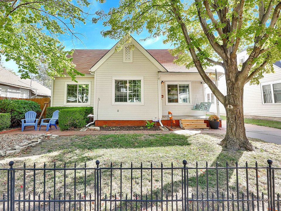 Check out the photos and virtual tour of this adorable Cottage style home in a neighborhood convenient to all that the central area of Wichita has to offer with easy access to Kellogg! You'll love this home as soon as you drive up and see the iron fencing, beautiful landscaping, and the welcoming covered front porch! It just keeps getting better as you step inside to a spacious, bright floor plan that features hardwood floors, newer windows that let in the light, two bedrooms, and a fully updated bath! There is a formal dining room that is so inviting and perfect for entertaining as well as a fully equipped and updated kitchen that includes all appliances as well! Step into the handy main floor laundry with washer/dryer and access to the partial basement and also a door to the huge backyard! It's fully fenced, includes a cute pergola and patio for entertaining family & friends! This beautiful home is move-in ready and won't last long on the market! Call today for your private showing before it's SOLD!