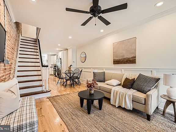 WOW! This home has it all! 4 bedroom, 3.5 bath newly rehabbed Canton townhome with 10 year CHAP tax credits pending, rooftop deck, and PARKING! This gorgeous home features a one year builder's warranty. You have to see this one. Picture frame wainscoting wall trim adds an attractive design statement to the living room and dining room. Gleaming hardwood floors, a gourmet kitchen with top-of-the-line stainless steel appliances. Quartz countertops and an oversized kitchen island. The oven even has a built in air fryer feature! A wine/beverage fridge has been installed. Original stained glass, vestibule and transoms add original Baltimore character to the sleek and modern finishings. A half bath on the main level tucked discreetly behind the kitchen for your convenience. Exposed brick on main and upper levels. Stairs to the Trex rooftop deck with stunning million dollar views are accessible from inside the upper level hallway. Full size washer and dryer conveniently located on the upper level. The full basement has been dug out and underpinned affording 2 more bedrooms and another full bathroom. Over 1800 square ft of luxurious living space! Easy parking on the concrete pad out back. Centrally located - just a few blocks from Historic Patterson Park and Canton Square. Close to stadiums, hospitals, schools, Fells Point, shopping, restaurants, tunnels, major highways, all Baltimore attractions and entertainment. Save lots of $$ with CHAP tax credits...make your appointment today!
