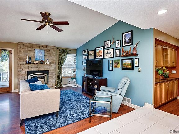 Beautifully updated ranch style home w/ walk out basement, conveniently located in desirable Highlands Ranch. Main floor features 3 bedrooms & 2 baths. Primary suite offers direct access to the deck as well as a ceiling fan & completely updated primary bath w/ stand alone shower, double vanity, granite countertops & heated floors. Large walk in closet w/ California closet organizer. Secondary full bath is also updated & features custom glass enclosure and tile floors. Secondary bedrooms w/ upgraded closet organizers. Spacious great room with beautiful, low maintenance, laminate floors & Lennox gas log fireplace with Colorado Buff stone surround. Lennox Gas fireplace with upgraded blower keeps the home warm on those cooler Colorado nights. You will love the completely updated kitchen with quartz countertops, large center island with seating, upgraded, solid wood soft close cabinets with custom spice rack & other upgraded features and pull outs. Stainless steel appliances included. Formal dining area adjacent to the great room & upgraded main floor laundry (washer/dryer included) complete the main level. Walk out basement with large recreation room with built in features, secondary gas fireplace with blower, additional storage, 3/4 bath. The unfinished portion of the basement would make for a great 4th bedroom. There is also a future rough in for a wet bar. Step outside to a gardeners dream. Recently refinished and upgraded large composite deck with lighting & dry below to keep patio located off walk out basement dry. Abundance of flowers, trees & plants to enjoy year round. New carpet upstairs, new exterior paint & roof(2022), newer fence (2014). Upgraded Andersen windows & doors. Lennox AC & Furnace installed 2012. Newer Water Heater(2015). Whole house attic fan. Oversized 2 car garage w/ access door. Access to all 4 recreation centers, miles of trails, nearby shopping and restaurants. Easy access to C470, Santa Fe and I25. You will love this fabulous home!