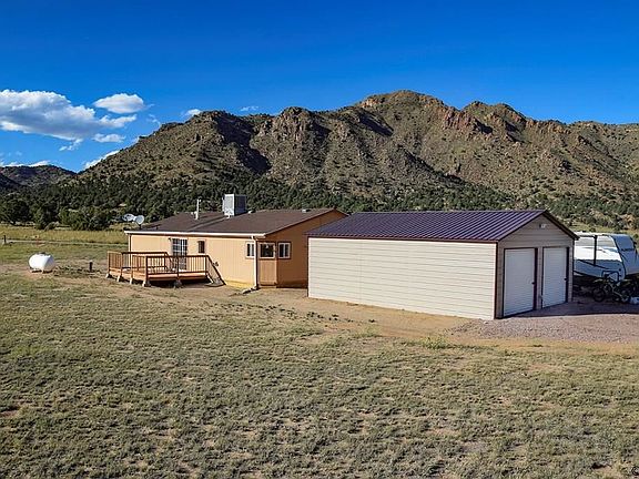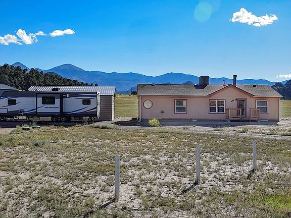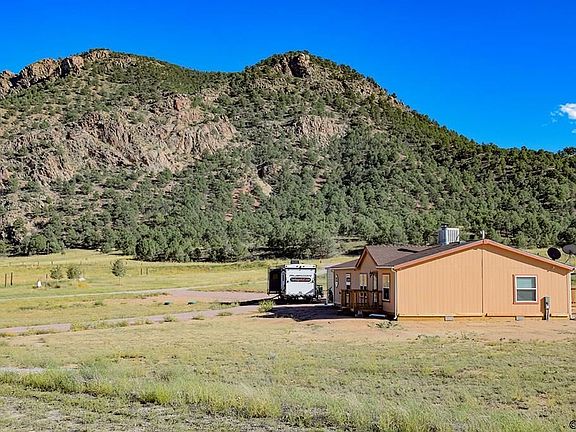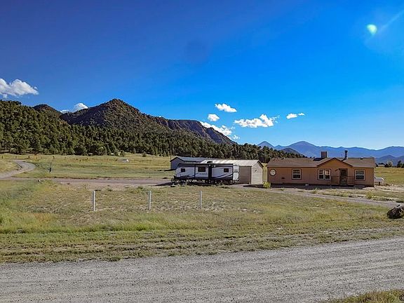 This clean and updated 1998 3 bed, 2 bath manufactured home will take your breath away with its unbelievable 360 mountain views and wide open spaces, on your own 1.2 acre corner lot, conveniently located just off of Hwy 50, 500 feet from the Arkansas River, 35 minutes to Canon City, 40 minutes to Salida! 2000 feet to BLM with public boat access. New permanent foundation, 2-car metal garage with electric and plumbing stubbed in. Updates include laminate flooring, carpet, upgraded stainless steel appliances, and washer and dryer included! You will love the beautiful rock-faced wood-burning fireplace, lofted ceilings, and oversized kitchen with lots of cabinets and storage space! Large master suite with walk-in closet and 5-piece bath with double sinks, soaker tub, and walk-in shower. RV septic hookups on both sides of circle driveway make this your perfect basecamp for adventures. Mountain views from every window, and a large back deck to enjoy the peace and quiet and the beauty of the mountain skies from the most colorful sunrises and sunsets, the bluest skies and brightest sun, and the darkest skies for viewing stars at night. Home furnishings negotiable. Owner financing available.