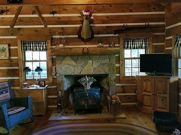 Where do I begin? How about 15 minutes to downtown Blue Ridge, 10 minutes to downtown Blairsville & the lake? How about a million dollar view, unexpected privacy, paved roads & easy access to the highway? Let's keep going with authentic chink log construction, 3 levels of decks, hot tub, separate covered parking with "Man Cave" that includes it's own cigar deck & firepit. Spacious open living/dining/kitchen with updated stainless appliances and Vermont Castings wood stove. BR/BA on each level, PLUS a sleeping loft, PLUS a family room with a custom-built bar for your Mardi Gras parties and built ins for home office or storage. No HOA, sensible C&R's, county maintained roads, county water, low taxes. Easy living in the mountains! This home & this view will not last. C'mon!