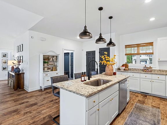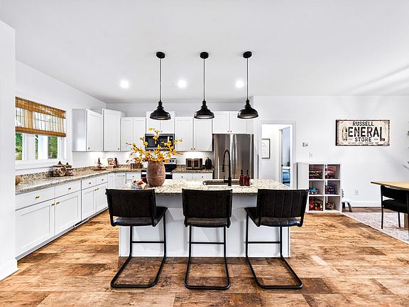 This better-than-new 2021 custom-built home combines modern design, cozy charm, and resort-style living all in one! Step inside to discover an open floor plan filled with natural light, soaring vaulted ceilings and a stunning shiplap fireplace that sets the tone for relaxed elegance.The kitchen is a dream for both everyday living and entertaining, featuring stainless steel appliances, granite countertops, a large island and upgraded lighting that adds a touch of sophistication. The spacious primary suite offers a tray ceiling, walk-in closet and spa-inspired bath for your own private retreat. Step outside to a generous deck and backyard ideal for grilling, gatherings or unwinding after a day on the lake. Located in the gated resort community of Lake Royale, you'll enjoy access to incredible amenities including 2 FREE golf memberships, beaches, a pool, tennis, pickleball, volleyball, mini golf, playgrounds, year-round boating and even a restaurant overlooking the golf course. Come see why so many are choosing Lake Royale for the lifestyle, not just the home. Experience resort living every day without leaving home.
