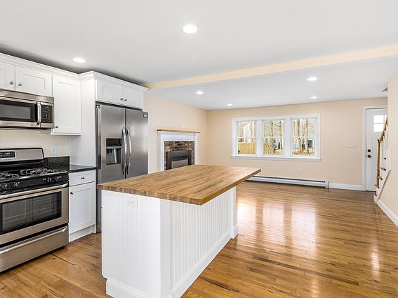 Fully renovated gambrel in 2016 three bedroom , 2 bath gambrel sits at the end of a cul de sac.First floor kitchen, dining room, living room w/gas fireplace, bedroom and full bath . Second floor shows 2 bedrooms and a full bath. Deck off the back with a large fenced in yard, Gleaming oak floors make this home a pleasure to show. All appliances convey except the dehumidifier. Please confirm all details.
