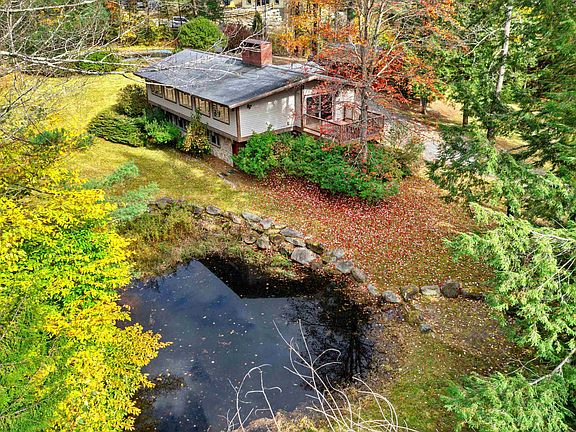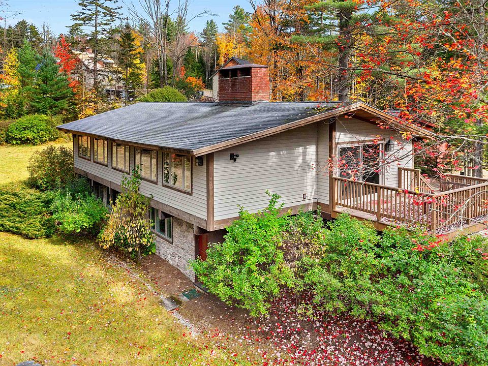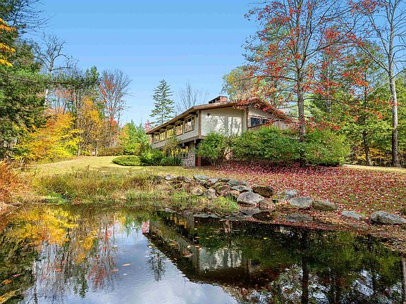 Step into the tranquility of this beautifully renovated home, where the tranquil charm of nature reigns. Surrounded by two streams and a serene reflective pond, this property is a haven just minutes away from Stowe Mountain Resort and our charming village. The split-level design of this house boasts four bedrooms and two baths, with a spacious living room that gracefully wraps around a central fireplace, creating a warm inviting ambiance. The modern kitchen and dining area open onto a deck that offers enchanting views of the pond, perfect for relaxation. Downstairs, a family room awaits, providing ample space for relaxing by the fireplace. And, during the warmer months, the swimming pool promises endless fun for friends and family. Your outdoor gear and equipment will find a home in the detached two-car garage, conveniently located just steps from the house. This home is a true turn-key opportunity, offering a fully furnished experience for your immediate enjoyment. It's the perfect retreat, combining modern comfort with natural beauty.