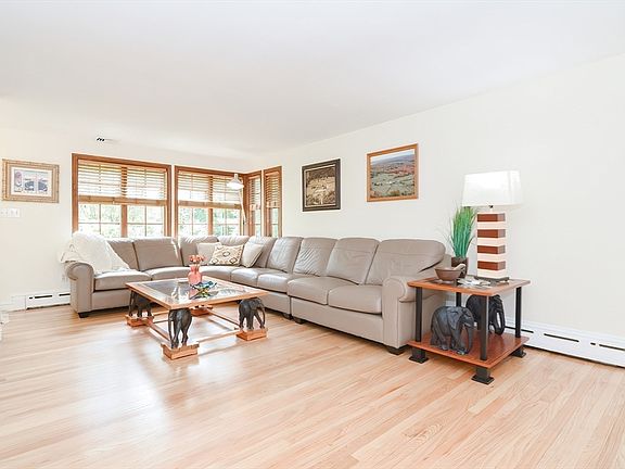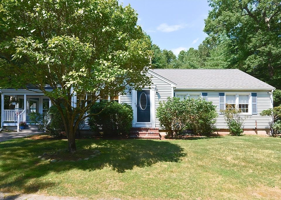 Wonderful 3 bedroom 2 bath ranch on large acre + lot. Gleaming hardwood floors, freshly painted, large white eat in kitchen that overlooks the yard and the pool. Both baths beautifully updated! 3 good sized bedrooms. Newer A/C, new high end whole house water filtration system. The basement is spacious and fun for hanging out at the retro bar which opens up to the family room complete with a pellet stove. There is also an additional storage/utility room and laundry area. This is a great house for summer enjoyment with it's farmer's porch, HUGE 20x11 3 season screened in porch, deck, and in-ground pool. Large circular drive offers sooooo much parking! Surrounded by conservation land, this home is very private and it sits at the end of a cul-de-sac. Location is super convenient being right off Rte 95, and close to shopping. Quick closing possible. First Showings at the Open House Saturday 8/17 11:30-1pm and Sunday 8/18 12-2 pm. Be First!!