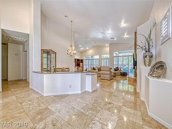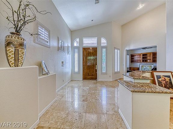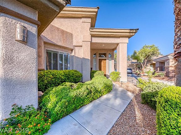 Fabulous one-story home located in gated community of Canyon Ridge in Summerlin*Open floorplan w/vaulted ceilings & tile flooring*Separated bedrooms for privacy*Den/office features floor-to-ceiling built-ins*Island kitchen, granite countertops, & appliances featuring cabinet paneling*Master suite w/spa-like bath & oversized walk-in closet*Lushly landscaped backyard w/covered patio*Built-in storage cabinets in the garage.