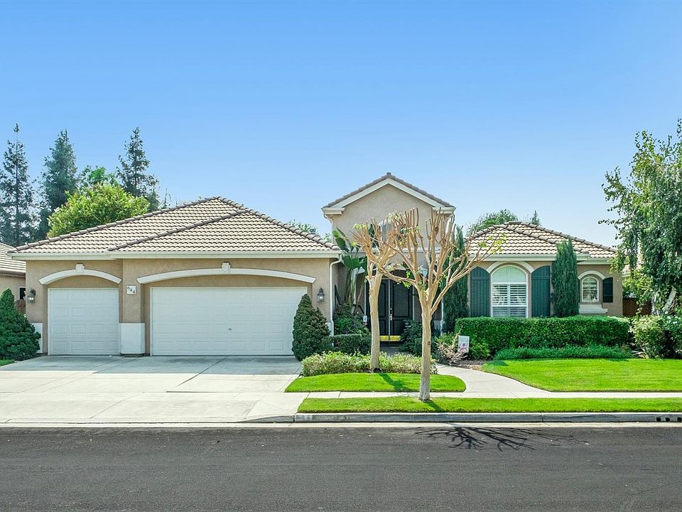 Owned Solar with this Buchanan Estates Single Level Beauty with 3-Car Garage and OVERSIZED LAP POOL! This terrific floor plan features a Courtyard surrounded by the Living Room, Family Room, Formal Dining Room PLUS a separate DEN! Everyone has their privacy with two bedrooms/bath on one wing, Master Suite on another and a complete private guest suite with it's own bathroom. 1/2 bath conveniently located near the open & airy kitchen which overlooks the spacious Family Room with fireplace! The Courtyard view from entering the home is charming for all to enjoy with access from several rooms. This North/South Facing lot in Clovis is situated on a short cul-de-sac and is convenient to shopping & the University. All hard surface flooring throughout the home....no carpeting! Imagine yourself in this gorgeous home for the Holidays! Desirable Clovis Schools! Note: Bed count is different than tax records; if important, buyer to verify.