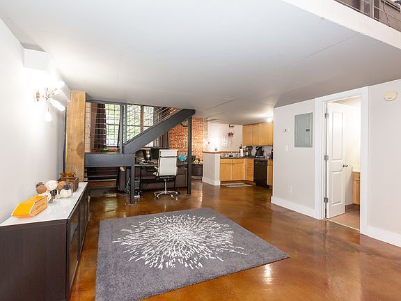 Incredible location - 10mins from downtown, 2 blocks from Marta and close to shops & restaurants at Castleberry Hill & Southwest Beltline Trail! Industrial loft polished concrete floors, large windows with tons of light, exposed beams, ducting, and brick. Kitchen has granite countertops and a breakfast bar. Flexible open concept layout. Bedroom is upstairs in open loft with skylight and walkin closet. 2 full bathrooms! Community is gated with only 18 units, secure parking lot, storage/1-car garage, exercise room, and a shared patio space with beautiful city views.