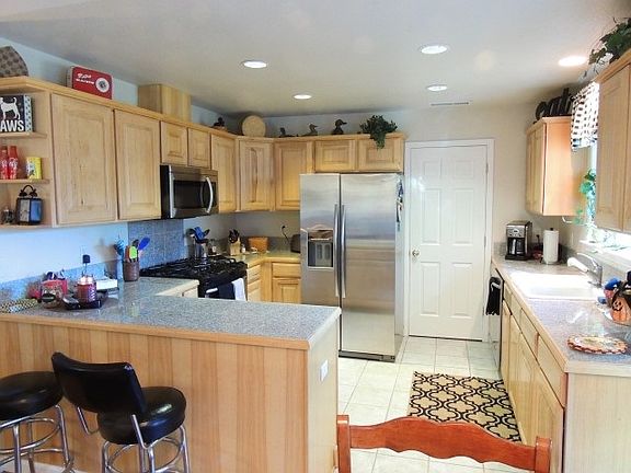 Perfect family home or vacation getaway. 1553 sq. ft. of spacious comfortable living with granite counter tops, engineered hardwood floors, featuring great room, breakfast bar, huge walk-in pantry, master separated from guest or other family bedrooms, lots of cabinets and storage, laundry room, 2 car garage with additional 2 car carport, large patio with huge pergola and more room for spa/ hot tub and barbecue area overlooking the wildlife on the BLM land behind for extra privacy and viewing through chain link fencing, 2 huge double gates on each side of the house with one side RV parking and all hook-ups and the other side for boat or other trailer or jet-ski parking, lush green lawn in the rear and easy maintenance front yard. There is not much more anyone would want to add to a house for comfortable pleasurable living.