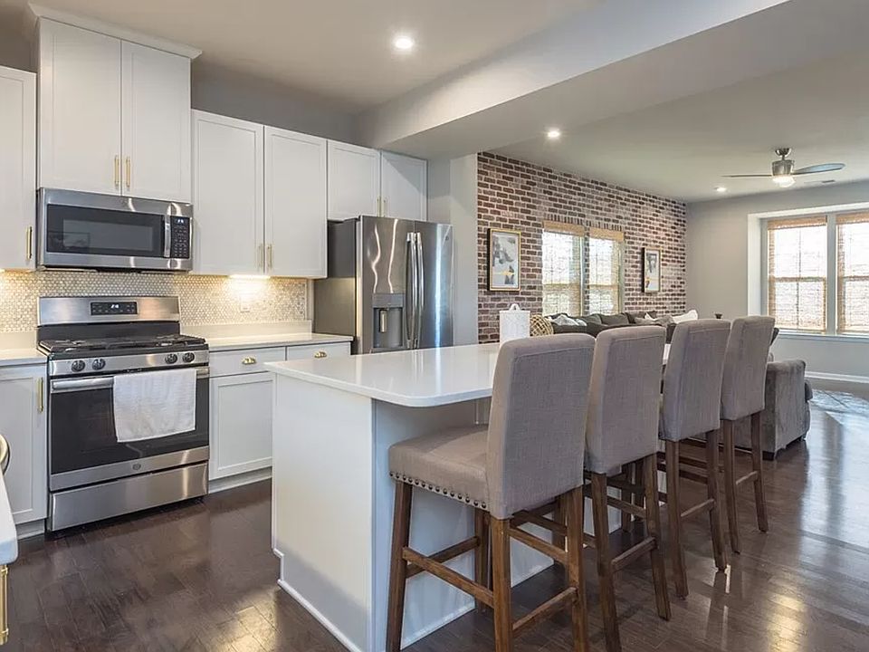 Fabulous end unit townhouse for lease in the sought after Wynwood section of Fox Creek! Features include 3 bedrooms, 2.5 baths, a 1st floor open floor plan with a gorgeous brick accent wall in the living room, spacious, bright kitchen, hardwood floors, eye-catching upgrades and much more! The large kitchen features quartz countertops, stainless steel appliances, stylish hardware, hardwood floors, breakfast bar and an eat-in kitchen area. Off the kitchen, you'll access your outdoor patio - perfect for entertaining or relaxing with a cold beverage on those warm, sunny days. The spacious primary bedroom offers a large walk-in-closet, primary bathroom with ceramic tile flooring, linen closet, raised double sink vanity, and large shower with glass door. Exploring upstairs, you'll also find the bright, single vanity hall bath with tub/shower combo, and newer carpet throughout the 2 additional bedrooms. Fox Creek offers tons of amenities that include a clubhouse, walking trails, sports fields, playgrounds, tennis courts, indoor and outdoor pools, splash park and a fitness center! This also features a fenced in rear yard and detached 2 car garage!