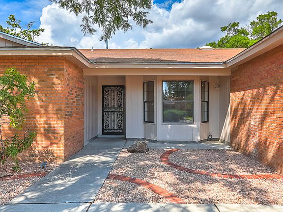 Popular Academy Hills! Call to see this Updated 1 Level, 4 BDRM Brick Ranch on a Large Xeriscaped Sandia Mountain View Lot w/Enclosed Garden Area or dog run! Private bkyd w/covered patio. Front covered Portico w/security door. Tile foyer w/updated light fixture & an entry closet, living room w/updated carpet & decorator paint, dining room w/updated carpet, light fixture & paint, updated kitchen overlooks the back patio & bkyd, big family room w/fireplace & built-ins. 4 Large BDRMS w/ample closet space, 2 baths. Extras Include: Decorator/interior paint, repainted garage, re-carpeting, wood style tile floors, granite counters/kitchen, breakfast nook & laundry room, SS appliances/sink. Updated light fixtures, Updated baths, Updated counters, Updated plumbing fixtures & More; Move in ready.