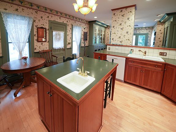 Immerse yourself in the serenity of days gone by while reveling in the luxuries of contemporary living in this idyllic farmhouse on 3.12 acres of wooded landscape. Boasting 5 bedrooms, (2 on the main floor for effortless living), and 2 full bathrooms, every inch of this home has been meticulously restored and renovated over the 40+ years the current owners have lived on the property. The original built-in cabinets off the kitchen add a touch of historic charm, preserving the character of yesteryears. Other original features are ceiling fans, light fixtures, and door knobs loaded with charm. The staircase and front porch railings feature old-world craftsman ''gingerbread'' lattice-work. The first floor features a kitchen with cherry wood cabinets, an eating area, a sitting room off the kitchen, a mud room/laundry room, a formal dining room (that could also be a large living area), a "parlor" (or a den/sitting room), 2 bedrooms and a full bath. Discover the unique history within the home with two staircases, one is a nostalgic relic that was reserved for the "help." The second floor offers a primary bedroom and full bath with a 6' whirlpool tub. There are 2 additional bedrooms upstairs. Enjoy moments of tranquility on the covered porch off the sitting room, surrounded by majestic trees and perennial gardens. Enjoy crisp evenings at the fire pit on top of the hill in the woods. This home has had only 3 owners over its long history. This property is a captivating blend of old-world charm and modern comfort, and will be featured in a book on Tyrone Township's historic homes. Call today for your private tour!
