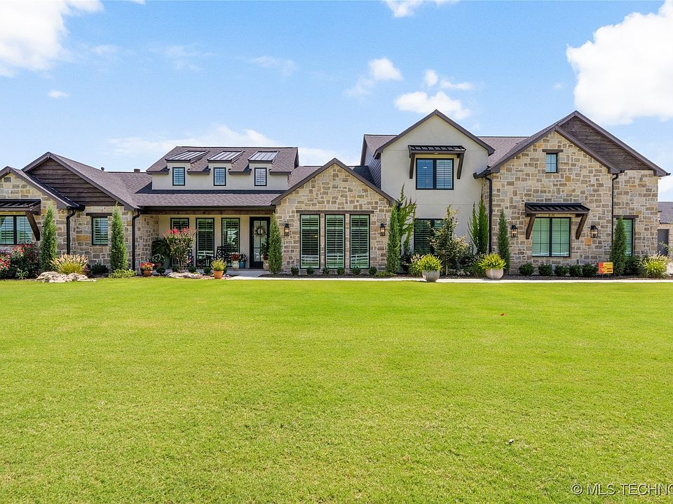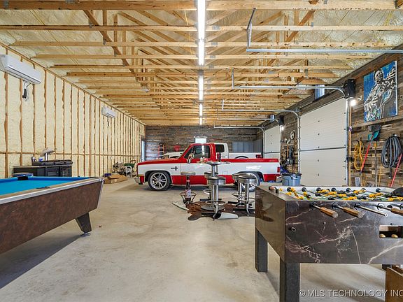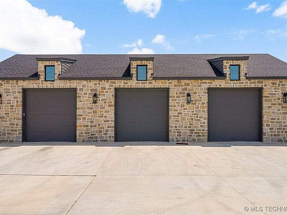 WELCOME HOME | Constructed in 2024, this sprawling, gated Bixby estate sits on 2.47 acres and offers the perfect blend of luxury and functionality. An 1,800 SF (AP) spray foam–insulated shop, resort-style outdoor living with a pool and spa, and a spacious residence filled with designer finishes and custom details make this property truly exceptional. The home is thoughtfully designed for both everyday living and entertaining, with soaring ceilings, abundant natural light, and a show-stopping kitchen that includes a galley-style prep kitchen. The main level features a spacious primary suite, a second bedroom with its own ensuite bath, a powder room, and a granite wet bar with direct access to the backyard. Upstairs, you'll find a third bedroom with ensuite bathroom, fourth bedroom, another full bathroom, and a large game room with a closet. Dedicated pool bathroom, and an attached 4-car garage. Additional highlights include tankless water heaters, spray foam insulation throughout, and a detached shop outfitted with electricity, three overhead garage doors, rustic wood wall finishes, and a functional workstation. Located within desirable Bixby Schools, this property offers a rare combination of space, comfort, and high-end amenities in a country setting with quick access to city amenities.