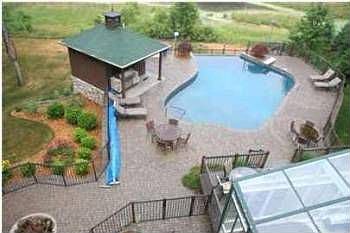 One Of A Kind Executive Home On 11 or more Acres. Completely remodeled in 2003 with Exotic Woods And Custom Building Materials, Master Bedroom On 2 Levels, Stunning Great Room Featuring A Huge Fireplace With Floor To Cathedral Ceiling Custom Stone Work. Enjoy Views From 5 Decks. Entertain In Style On A Patio That Surrounds A Breathtaking Deep Dark Bottom Infinity Edge Pool With Waterfall And Lower Deck Overlooking Your Own Private Pond. Pool Cabana Has Kitchen, Changing Room And Bath. Acreage Is Professionally Landscaped, Teaming With Wildlife and has a Large Pole Barn. Additional 15 contiguous acres available as well.