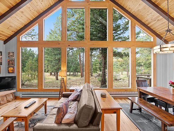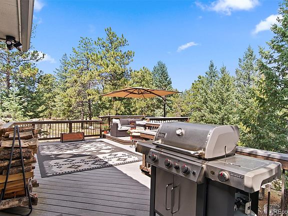 Enjoy the good life in this exquisitely remodeled home in the quiet setting of Evergreen Highlands. Set on a serene & fire-mitigated 2-acre lot, this mountain retreat offers like-new living & serenity in a peaceful wooded setting & even boasts Mount Blue Sky Views! The circular driveway w/side load garage leads to the perfect blend of luxury & mountain charm in a place of grandeur. The main floor offers a truly great room, adorned with hand-scraped brushed Hickory floors, remarkable custom alder-trimmed wall of windows w/captivating views & even a moss rock wood-burning fireplace for cozy Colorado evenings. Vaulted Western Red Cedar ceilings w/exposed beams elevate the smooth elegance, creating a breathtaking space to relax and breath. Remove stairs from your life with a main floor primary suite featuring two walk-in closets & new en-suite bath, including a frameless walk-in shower w/rainfall shower head.The heart of this home is the professionally remodeled kitchen, which boasts custom soft-close cabinetry, 2 pantries, top-of-the-line Bosch stainless steel appliances: induction stove w/convection oven, ultra-quiet dishwasher, and 2-temp wine fridge. This kitchen is designed to thrive in with ample storage, a built-in desk, and room for all your culinary adventures!The upstairs loft w/guest suite & redesigned/rebuilt bath provides the ideal space for family and visitors. The home’s energy-efficient LED lighting & Comcast high-speed internet ensure modern conveniences, while thoughtful details like solid knotty alder doors, trim, & baseboards add to its timeless appeal. Enjoy outdoor living year-round on the amazing deck, offering stunning views, space for entertaining and grilling.Additional features include an EV charger in the garage, extensive water filtration completely sealed crawl space + access to neighborhood amenities like a clubhouse, tennis courts, playground, and a stocked fishing pond. This fully remodeled mountain escape is ready to welcome you home!